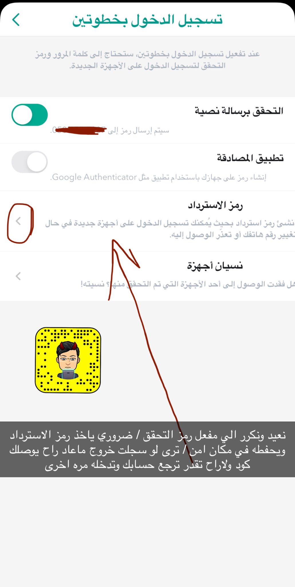 سالم الحربي خبير تقني on twitter من فعل رمز التحقق في سناب ضروري ياخذ رمز استرداد