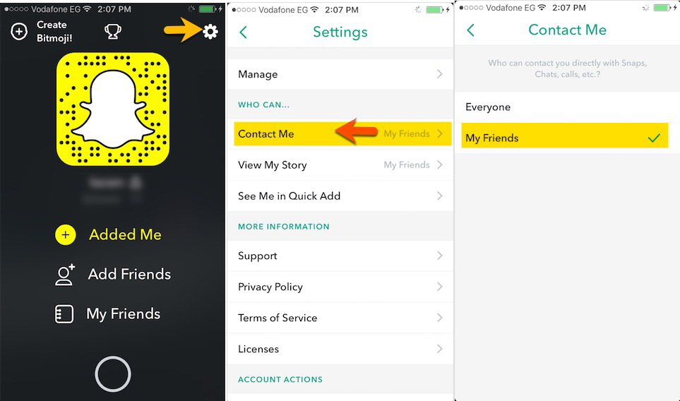 ايقاف الرسائل لغير الاصدقاء في سناب شات